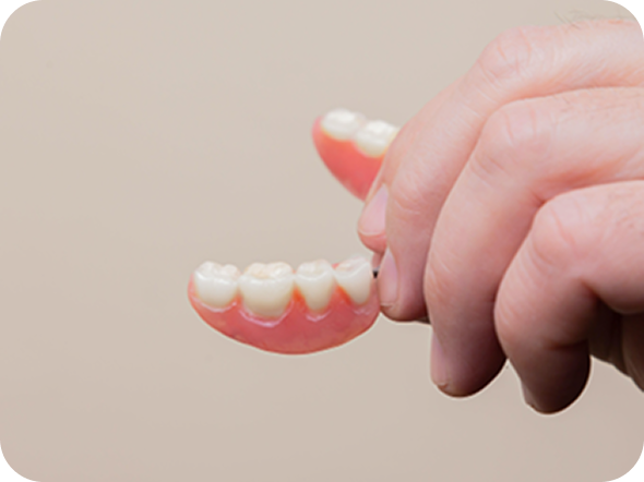 失われた歯を補うための入れ歯治療を行います。患者様一人ひとりの噛み合わせや口腔内の状態を丁寧に確認し、快適に使用できる入れ歯を作製します。部分入れ歯や総入れ歯の作成に加え、現在ご使用中の入れ歯の調整や修理も承ります。